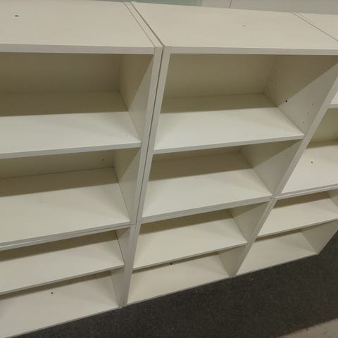 4 kpl valkoisia hyllyjä 22,5*49 ja kapea sokkeli 20*51,5.