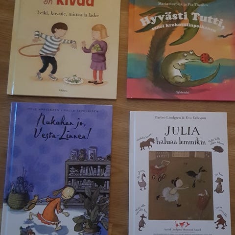 Kauniisti kuvitettuja eläinsatuja. Voi noutaa tai vähintään 5euron ostokset voin lähettää matkahuollon pakettina. Katsothan muutkin ilmoitukseni.