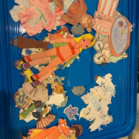 Vanha nukke. Näitä on toinenkin pinkeillä hiuksilla.