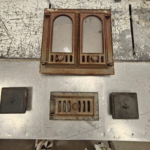 Valurautainen takanluukku, jossa on kaksi erillistä luukkua.