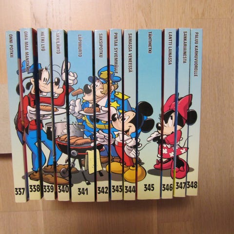 Aku Ankan taskukirjat 289-300, yht. 12 taskaria, 15 €. Nouto Kuopiosta keskustasta. Pakettiautomaattilähetys Manner-Suomeen 6 euroa, josta saa lähetyksen seurantanumeron. En käytä ToriDiiliä.