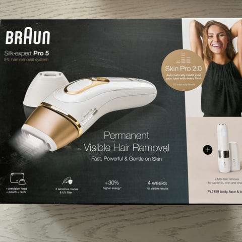 Braun Silk·expert Pro 5 IPL -karvanpoistolaite kotikäyttöön. Laitteessa on Skin Pro 2.0 -teknologia, joka säätää valon voimakkuutta ihon sävyn mukaan. Sopii näkyvän ihokarvan poistoon kehosta ja kasvojen tietyiltä alueilta valmistajan ohjeiden mukaisesti. Johdollinen laite, jossa on useita tehoasetuksia ja salamanäppäin. Pakkaus sisältää IPL-laitteen ja