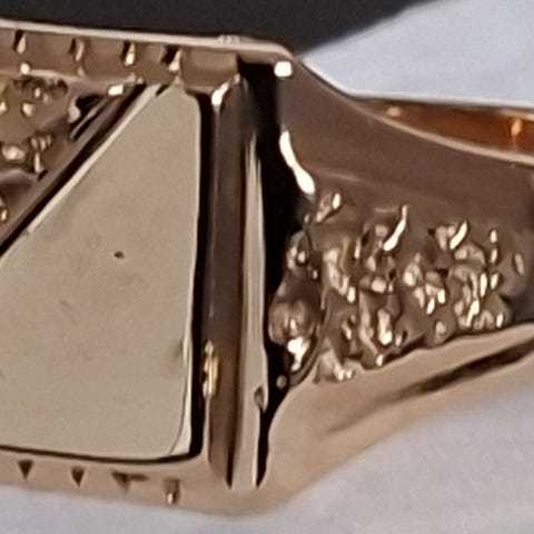 Näyttävä kuvien mukainen kantasormus. Vähällä käytöllä ollut. Pientä hiusnaarmua löytyy mutta käytössä sitä ei näe. Koko noin 18 ja 14K kultaa. Sormuksen sisäpuolella 585 leima.