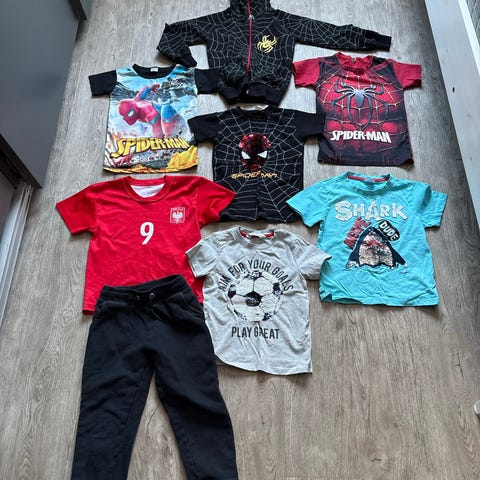 Kuvien vaatteet, hyväkuntoisia, mm. Polarn O Pyretin paita, Pomp de lux huppari, spiderman puku