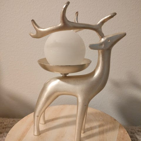 Pentikin hopeoitu messinkinen poro. Koko 19 cm. Siistissä käytetyssä kunnossa, ehjä ja kaunis.