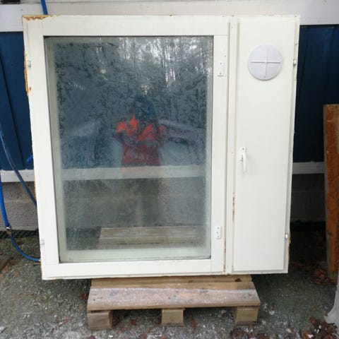 Käytössä ollut 2-kertainen ikkuna ja tuuletusluukku. Ikkuna 9x1,2 ja luukku 3x1,2