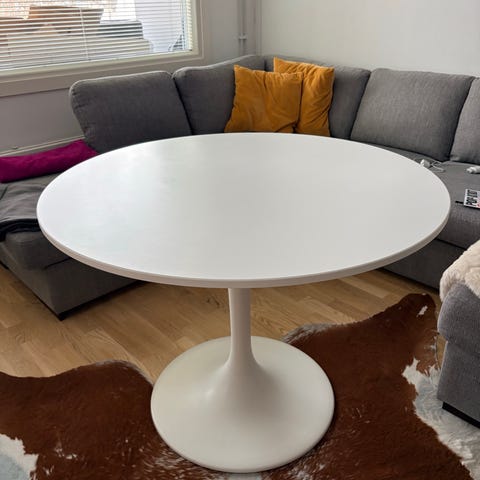Ikea Docksta pöytä. Nouto Kampista. Pieniä käytön jälkiä kuvissa. Pöytälevyn voi irrottaa jalasta.