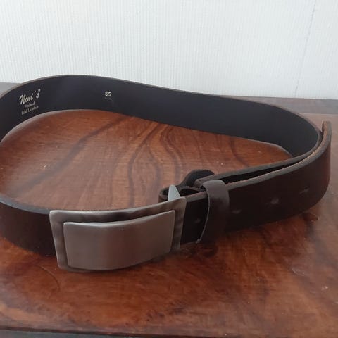 Esprit-merkkinen ruskea nahkavyö. Vyön pituus on merkinnän mukaan 90 cm, ja leveys 4cm. Materiaalina on aito nahka ja solki on metallinen, hopeansävyinen.