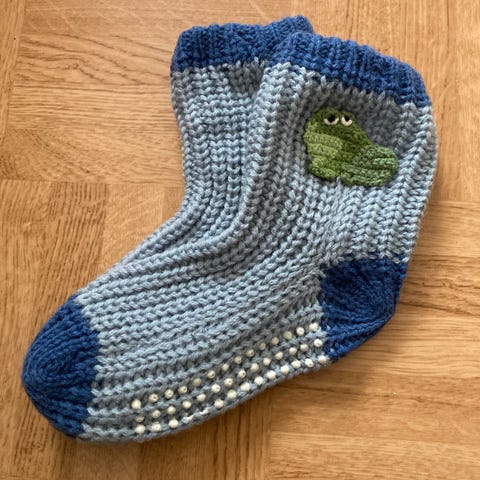 Kahdet kotimaiset Sukkamestarin sukat merinovillaa, koot 31-33 mutta ovat pienemmät. Etenkin lintukuvioisissa kuvio tekee sen ettei niin jousta. Punaisia pidetty ehkä Max kahdesti, lintukuvioisia enemmän ja niissä nyppyä. Parin silmukan reiän alku korjattu kärkisaumasta.