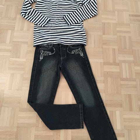 Myydään pakettina tyttöjen kiiltäväpintaiset reisitaskuhousut, farkut ja shortsit kokoa 146-152. Vain nouto.