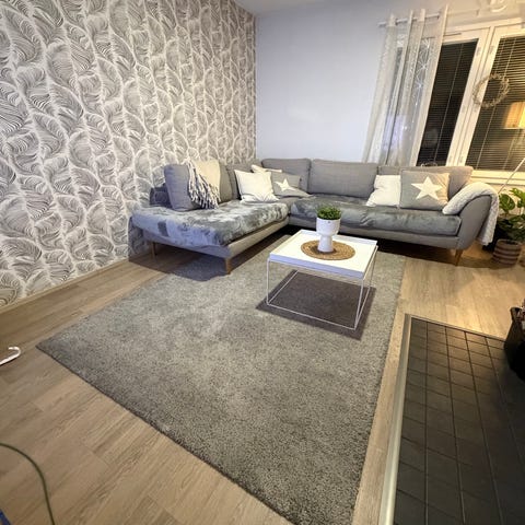 Iso beige matto, eläväpintainen matala nukka, ei näkyviä tahroja mutta ei ole hetkeen pesty, pesulla varmasti saa vielä siistimmäksi, tämä huomioitu hinnassa. Muuten ihan hyväkuntoinen.