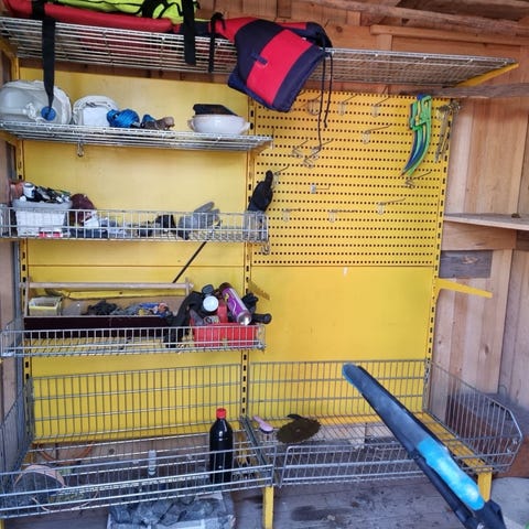 Coca-Cola ja Fazer myymäläkalusteet ja hyllyt. Kuvissa näkyy Coca-Cola-brändättyjä punaisia kalusteita, Fazer-brändätty sininen kaluste sekä harmaa metallinen hyllymoduuli. Lisäksi mukana on valkoisia seinäpaneeleja, joissa on useita metallisia ripustuskoukkuja tuotteiden esillepanoa varten. Kalusteet soveltuvat esimerkiksi kioskiin, kauppaan tai muuhun myymälätilaan tuotteiden esillepanoon ja säilytykseen. Paljon erillaista hylly kokonaisuutta. Hyllyjä on kaiken kaikkiaan 51+4varasto hyllyä. Sekä 2kpl kassa koneita. Nyt tarjous hintaan koko myymälä tyhjäks 1200e