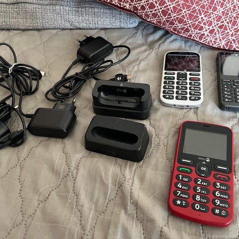 Doro puhelin vara akulla ja laturi tulee mukaan.Toimii muuten hyvin mutta lataus liitin puhelimessa viallinen mutta toimii kunhan ei ihan pohjaan laita lataus liitintä.