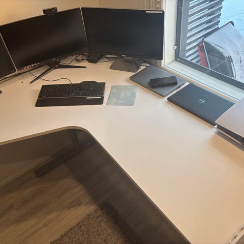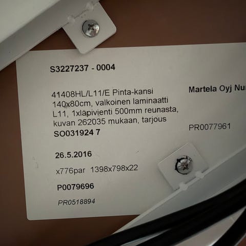 Myydään siisti ja hyväkuntoinen sähköpöytä. Korkeuden säätö toimii moitteettomasti. Maksimi korkeus on 123cm. Kanteen jäänyt tietokoneen näytöstä jäljet, näkyy kuvassa. Seinän puoleisella reunalla huopatassut, joista saattaa jäädä liimaa yms jäljet jos ne irrottaa.