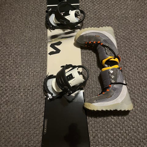 Täydellinen lumilautailusetti. Se sisältää lumilaudan (150 cm), lumilautakengät (koko 41), kypärä, laskettelulasit ja tuulenpitävän kaulurin. Kaikki tavarat olleet normaalissa käytössä, kunto kuvan mukainen.