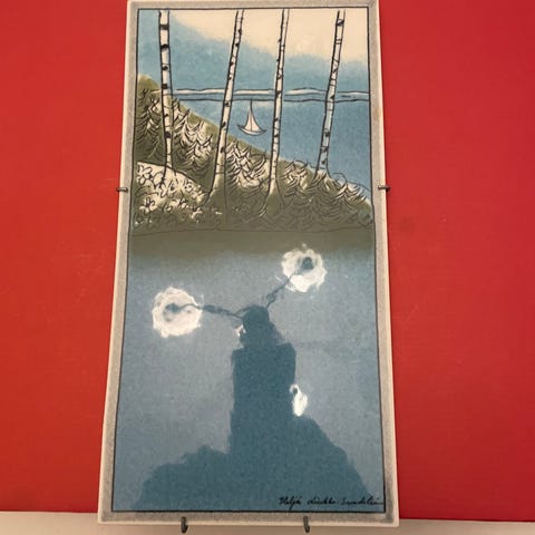 Purjelaivaseinälautanen, halk. n. 20cm.