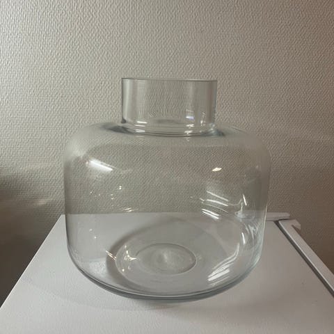 H&M Home iso lasimaljakko, jossa liila kuviointi ja aaltoileva reuna.