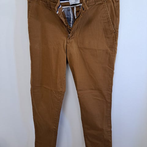 Miesten Selected homme puuvillahousut W33 L32 + vyö. Kunto hyvä, lahkeensuut siistit, ainoastaam vyössä näkyy ajan kulumaa.