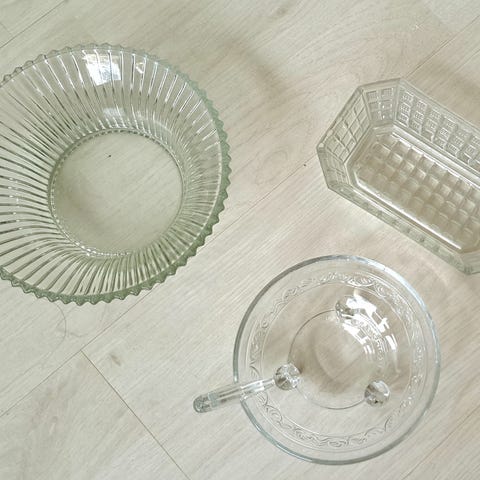 Myydään käytössä ollut Karhulan lasin Säde lasikulho, suunnittelija Göran Hongell. Ollut tuotannossa 1940- ja 1950- luvulla. Ehjä, mutta joitakin naarmuja löytyy.