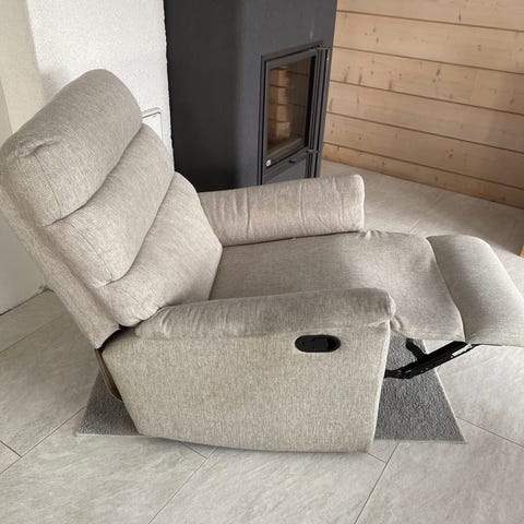 Vanha vintage nojatuoli etsii uutta kotia. Uutta verhoilua vaatii. Muuten pehmeä istua ja tyolia saa säädettyä niin, että pääsee osittain makuulle. Kangas tummunut / pinttynyt ja oikeassa käsinojassa repeytymä