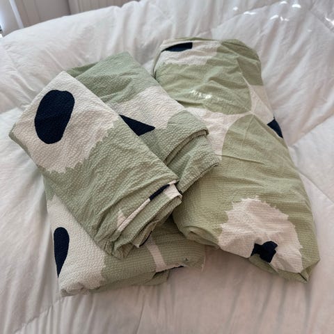 Marimekko pussilakanasetti vihreä raidallinen kukkakuvio