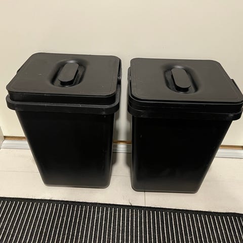 Kaksi vähän käytettyä Ikean Sortera -sarjan lajitteluastiaa. Muovia, 37 litran tilavuus.