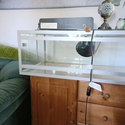 Myydään kuvassa oleva terraario sekä tavarat. Terraarion pituus 101 cm, leveys 41 cm ja syvyys 49 cm.