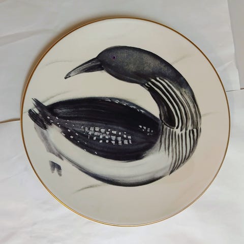 Arabia, Juha Pykäläinen, Pohjolan linnut, Silkkiuikku, mittoja lautasen halkaisija n.22,5 cm