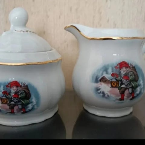 Apilanlehden tonttufiguuri.Kahvipannusta on katkennut nokka,muuten uudenveroinen.
