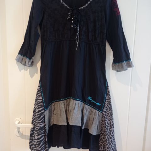 Desigualin a-linjainen mekko kokoa S. Ollut käytössä S-M-kokoisella. Todella mukava päällä. Ulottuu itsellä polvien yläpuolelle.