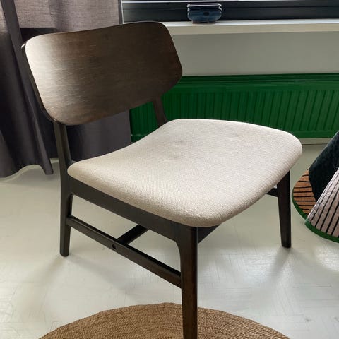 Yhdestä jalasta puuttuu tappi ( katso kuva), ei haittaa istumista kun tuoli on maton päällä.