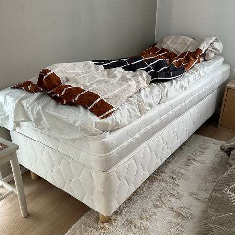 Sänky on hyväkuntoinen. Savuttomasta asunnosta ( ei tupakoitu sisällä). Mitat Leveys 90cm, pituus 200cm, korkeus 45cm. Kovuus: Medium. Pari pientä käytönjälkiä löytyy.