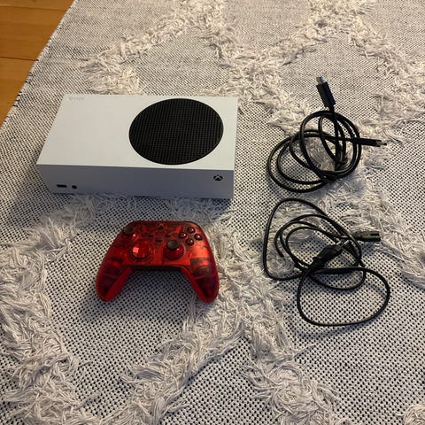 Xbox Series S ohjaimilla ja oheistuotteilla