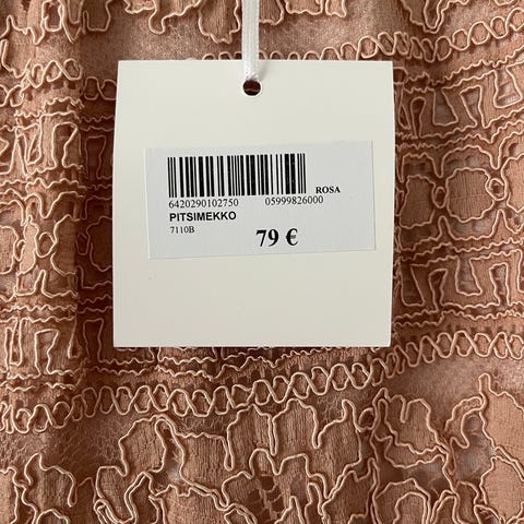 Todella suloinen ja romanttinen pitsimekko. Kauniit kerrokset helmassa, ihanat pitsiyksityiskohdat ja vähän kiiltävä materiaali. 75% puuvilla, 25% polyester, vuori: 100: polyester. Koko M, reilu. Kai-kai 54cm, olka-helma 87cm. Erinomainen kunto.