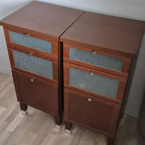 Myydään kaksi hyväkuntoista ja saman näköistä yöpöytää/lipastoa. 30€ pyyntö molemmista pöydistä.