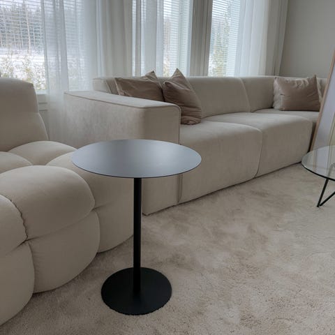 Hakusanat: musta pöytä, moderni pöytä, kolmijalkainen pöytä, pöytä, pöydät, tarjoilu, sivupöytä, apupöytä, taso, huonekalu, huonekalut, sivupöydät, pyöreä pöytä, käytetyt huonekalut