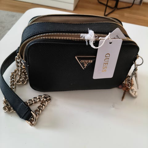 Guess olkalaukku naisille. Materiaalina nahka. Laukussa on monogrammikuosi, säädettävä olkahihna ja vetoketjukiinnitys. Sisäpuolella on useita lokeroita ja taskuja pienten tavaroiden säilytykseen. Ulkopuolella on vetoketjutasku lisäsäilytystilaa varten. Soveltuu arkeen ja vapaa-aikaan henkilökohtaisten tavaroiden kuljettamiseen.