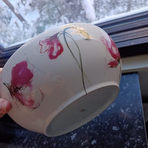 pentikin nostalgia sarjan lasinen tarjoiluastia, täysin ehjä. Halkaisija 22cm, korkeus noin 15cm.