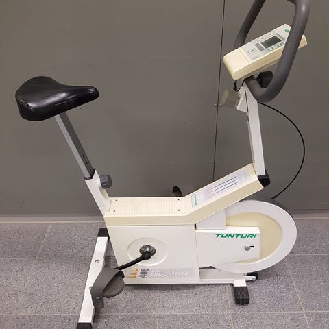Tunturi E90 kuntopyörä sisäliikuntaan. Laitteessa on säädettävä satula ja ohjaustanko sekä elektroninen näyttö, josta voi seurata harjoittelun perusarvoja ja säätää vastusta. Väri on harmaan ja vaalean yhdistelmä. Soveltuu kotikäyttöön kuntoiluun ja peruskestävyysharjoitteluun.