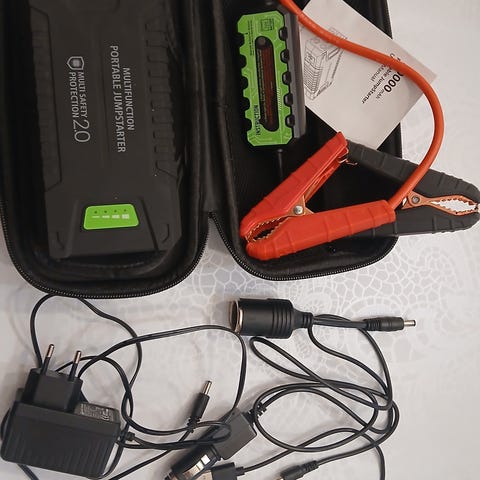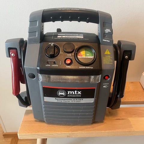 AXA AX4 apukäynnistin 12V ajoneuvojen käynnistämiseen. Käynnistysvirta 300A ja huippuvirta 800A. Akun kapasiteetti 8000mAh. Laitteessa on musta-punainen runko ja mukana käynnistyskaapelit hauenleuoilla. Soveltuu 12V ajoneuvojen moottorien apukäynnistykseen ja varavirtalähteeksi tilanteisiin, joissa ajoneuvon akku on tyhjentynyt.
