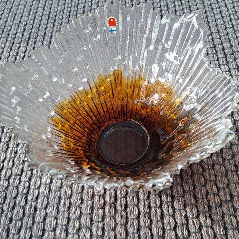Myydään hyväkuntoinen Tauno Wirkkala, Humppila lasikulho. Signeerattu. Lev. n. 27 cm, kork. n. 10 cm.