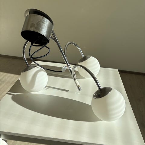 Valaisimessa korkeudensäätö 45/145. Suojaeristetty, kaksi johdinta. Varjostimen ulkopuoli hopeinen, reunat mustat, sisäpuoli valkoinen. Varjostimen halkaisija 42 cm.