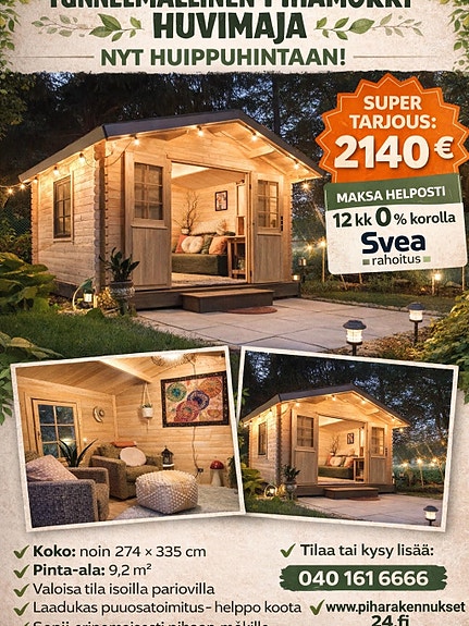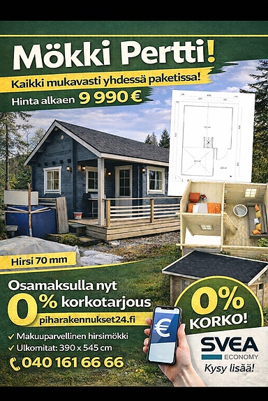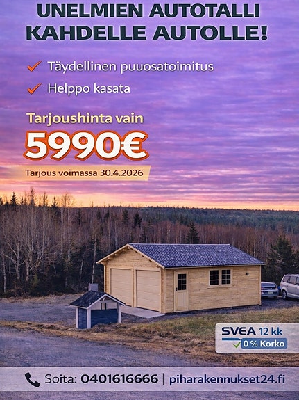 HUIPPU TARJOUS,Autotalli / Varasto ,Täydellinen Puuosatoimitus,Sis ikkunat ovet ,Hirsi 40mm, ENNEN 6990€ ja nyt 4690€ kysy lisää 0401616666