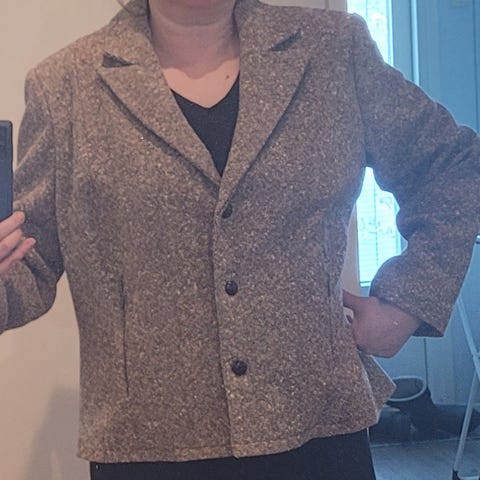 Musta pitkähkö rokahtava juhlajakku hopeanvärisin koristuksin, hihansuissa kivat yksityiskohdat, itsetehty, vuorellinen, tyylikäs, viimeistelty, ohut, kepeä, kiva päällä. Takaa pituus 80cm, hihat 50cm.
