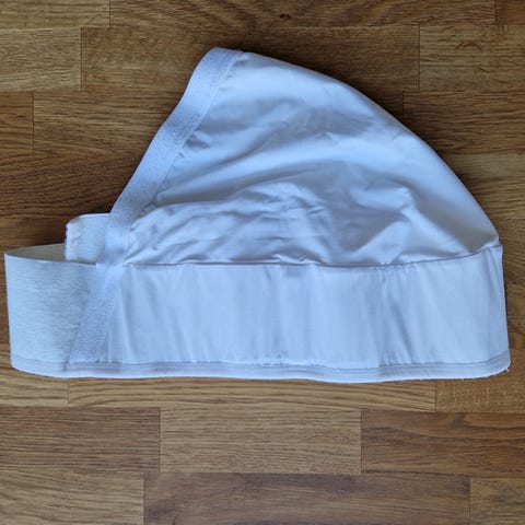 Anita -merkin raskausajan tukivyö. Kuminauharesorissa edessä hieman taitetta, mutta pysyy suorana. Kuvassa paketista kokotaulukko, mutta laatikkoa ei mukaan.