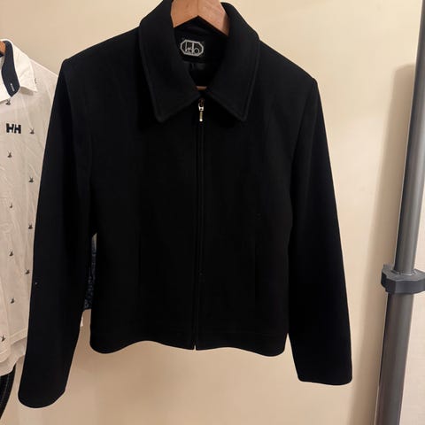 Laadukas musta villakangastakki, jossa on samettiset yksityiskohdat esim. hihoissa. Erittäin hyvässä kunnossa.