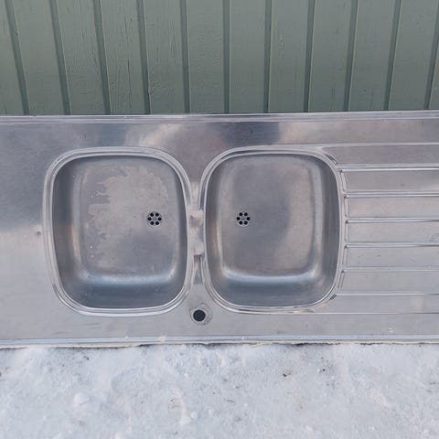 Myydään iso rosterinen kahden altaan tiskipöytä. Metallisen rungon saa mukaan. Mitat leveys 200 cm, syvyys 60cm ja korkeus 81,5 cm.