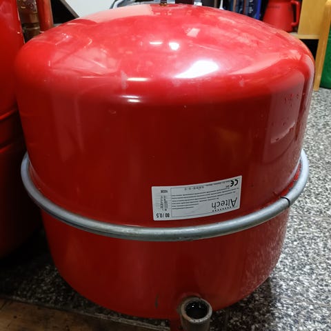 Altech paisuntasäiliö lämmitys- tai käyttövesijärjestelmään. Sylinterinmuotoinen, pystyasentoon tarkoitettu malli. Säiliö on väriltään punainen ja siinä on valmistajan tyyppikilpi sekä liitäntä venttiilille. Soveltuu käytettäväksi osana suljettua vesikiertoista järjestelmää, jossa tarvitaan paisuntasäiliötä paineen tasaamiseen. Tarkemmat tekniset tiedot, kuten tilavuus ja suurin käyttöpaine, löytyvät säiliön tyyppikilvestä.