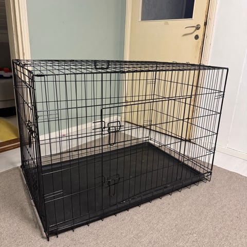 Myydään metallinen Carlson koiran häkki. Irrotettava pohja. Päädyssä ja sivussa ovet.