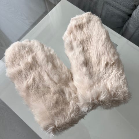 Muistaakseni ne on valmistettu vuohenturkista. Ne ovat erittäin lämpimät, naarmuuntumattomat ja ommeltu käsinompelua jäljittelevällä tekniikalla. En enää tarvitse niitä tässä ilmastossa, johon olen muuttamassa.
